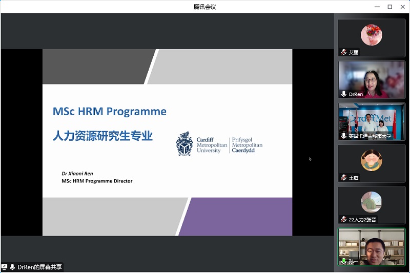 1019日,我校友好学校卡迪夫城市大学在线上举办人力资源专业专场宣讲会,专题介绍了卡迪夫城市大学管理学院人力资源管理专业的相关学术信息。卡迪夫城市大学管理学院研究生系主任任小妮博士、东亚区域中心办公室主席李斌、副主任吴静静,我校管理学院人力资源系主任、专业带头人,国际交流与合作中心全体教师、以及22级新生和部分21级、20级学生参加了本次宣讲会。